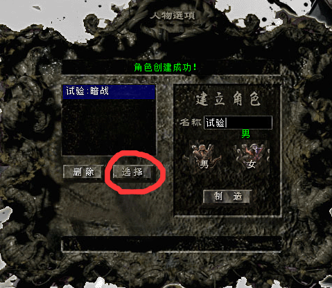五、创建角色,点击选择进入游戏。登录其他人物无需重复上述步骤。